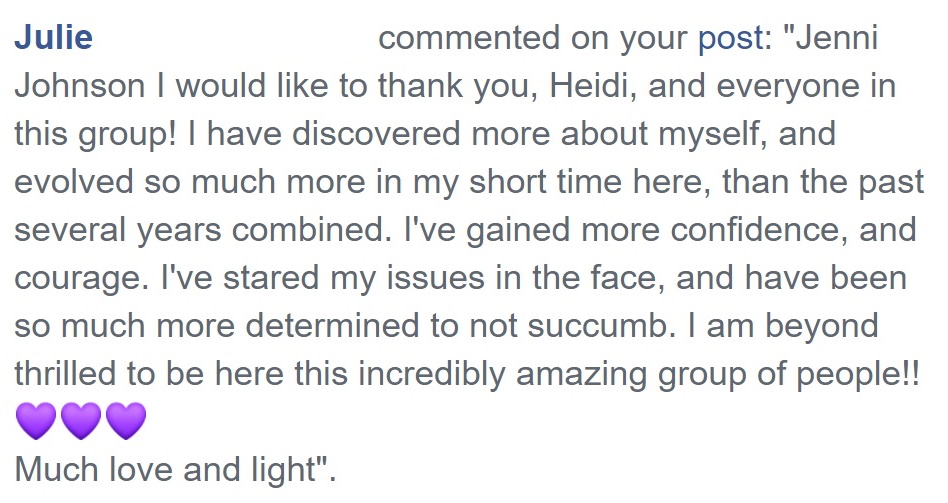 You have nothing to lose. Have a look at some of Heidi’s online recordings and videos, and take that first step”.